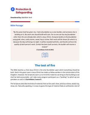 Scripture teaches that Jesus is the foundation of the Church, and the works we do as believers build upon that foundation. The Bible also says that our works will be tested with fire. Read this devotional and be encouraged as you pursue things that will matter for eternity.