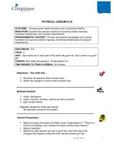 The Core Curriculum for children between the ages of 3 and 5 years includes 44 individual lessons that help develop the child physically. This set of lessons includes topics such as hygiene for the body, the family, human development, health, nutrition,and safety lessons. Each of the 42 lessons includes: lesson plans (length, objectives,preparation and materials), class-time content which includes both detailed instructions on how to teach the lesson topic as well as games and interactive activities to enhancelearning, and a teacher assessment. The lessons and activities are intended for use in groups.