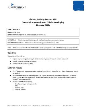 The lesson “Communication with Your Child-Developing Listening Skills” helps the mother/caregiver understand why listening attentively to her child encourages positive socio-emotional growth. She will learn attentive listening techniques and practice attentive listening skills.