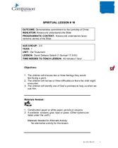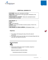 The Core Curriculum for children between the ages of 3 and 5 includes 46 individual lessons to help develop the children spiritually, as they learn about God’s love, His promises, and His plan for their lives through well-known Bible stories. Ultimately, the children will know and understand basic narrative stories of the Bible and will demonstrate commitment to the Lordship of Christ. Lessons include stories from both the Old Testament and the New Testament, ensuring children know and understand God’s love and His promises from Creation to the Resurrection. Each lesson includes guided instructions for the teacher, including preparation, a script, and suggested activities to facilitate further learning in a fun and interactive manner.